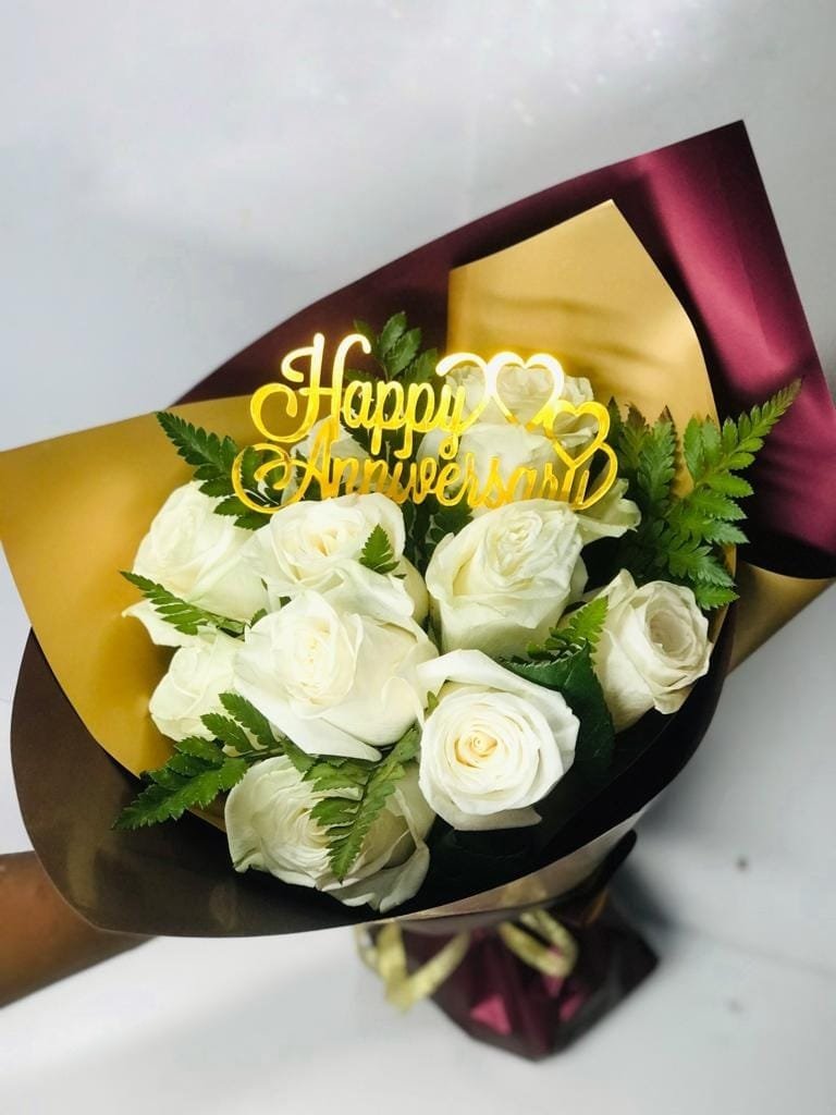 At Zuzu Delights we understand the importance of delivering flowers at their peak freshness. We source our white roses directly from trusted local farms in Lagos, ensuring they arrive with vibrant blooms and a captivating fragrance. Our skilled florists hand-arrange each bouquet with meticulous care, creating a masterpiece that reflects your heartfelt message.